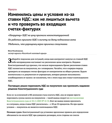 Обо всех плановых и внеплановых поправках узнает «Российский налоговый курьер»! Закажите доступ к журналу прямо сейчас